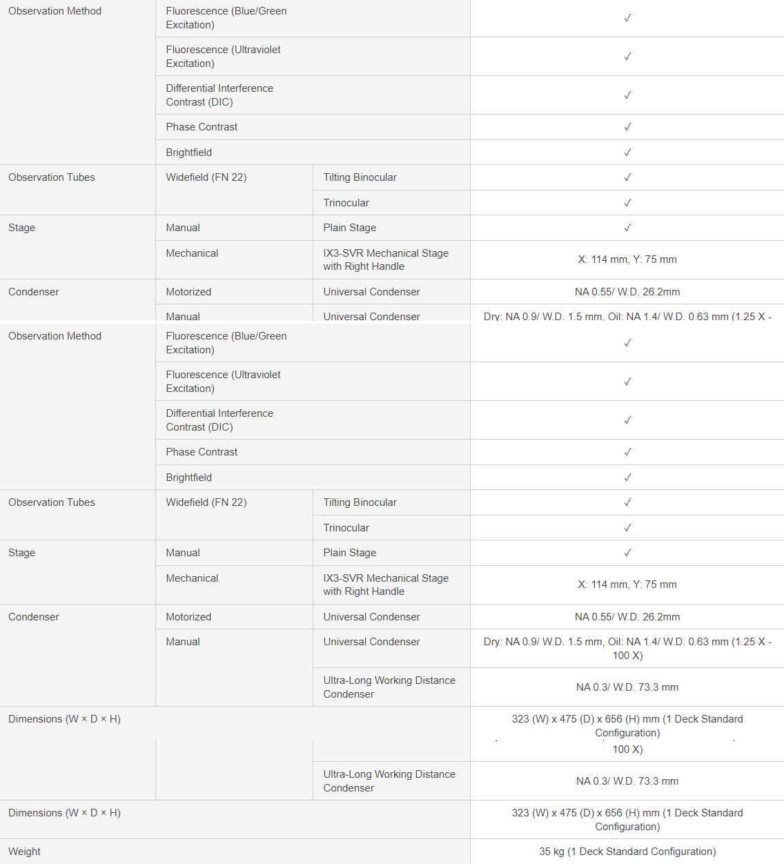 The Olympus IX73 inverted microscope has been integrated into our IXplore systems. IXplore Systems are designed to provide solutions-based packages that suit your research application needs.