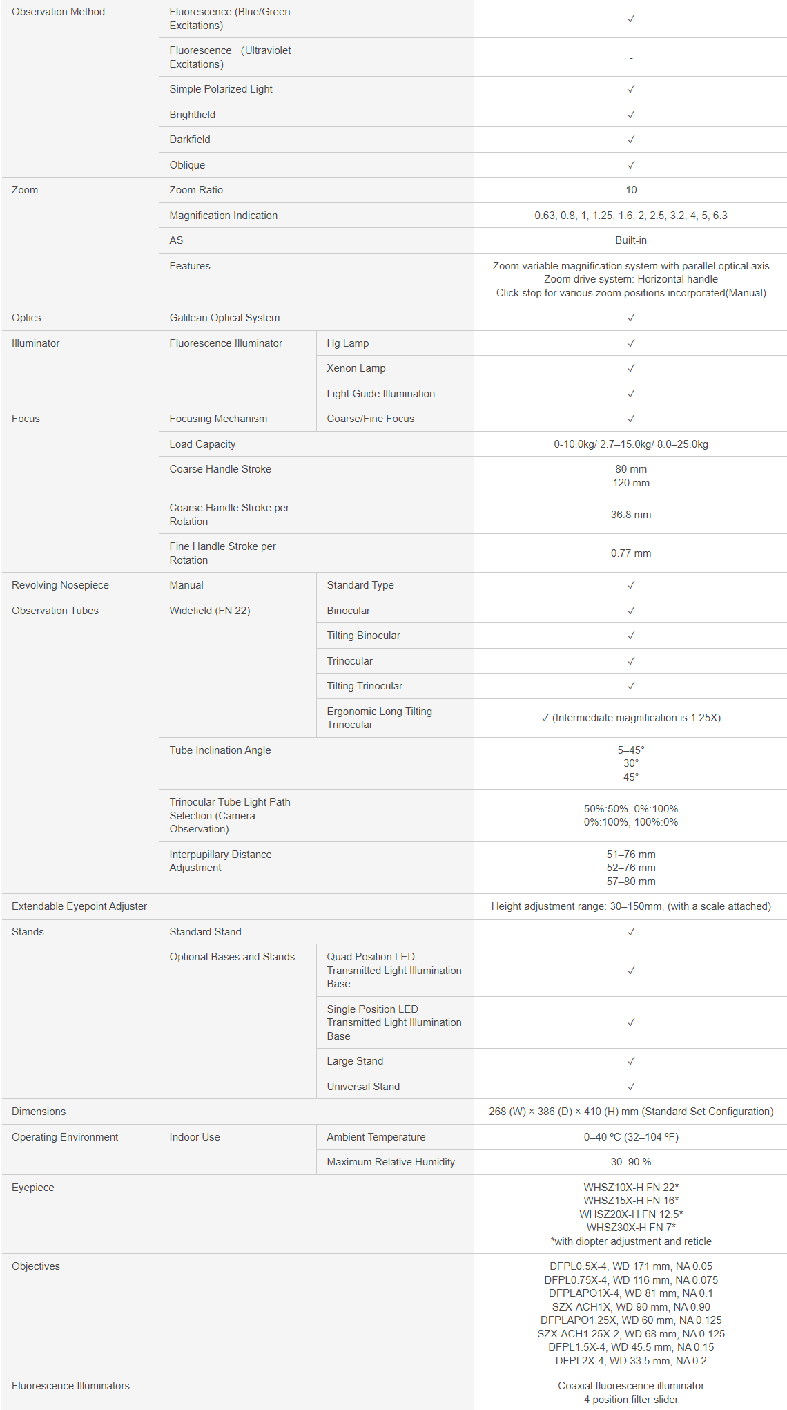 The SZX10 is designed to provide a natural view of the specimen with excellent stereo and color representation. The DFPlan series combines high-NA resolving power and working comfort with "distortion-free" optical design for exceptionally flat imaging, and includes a 2x objective lens with an NA of 0.2 for high-resolution imaging at 600 linepair per millimeter.