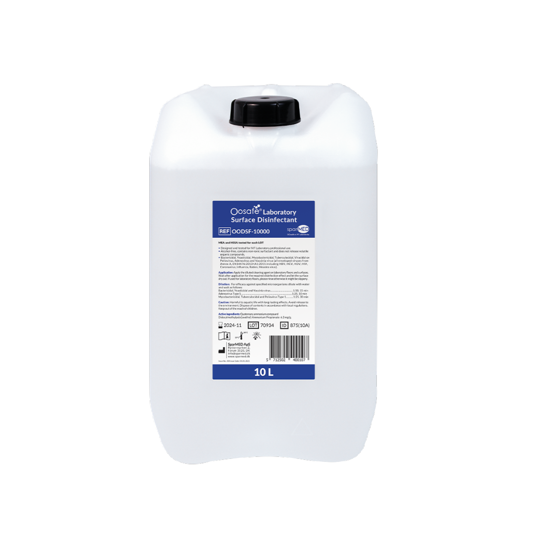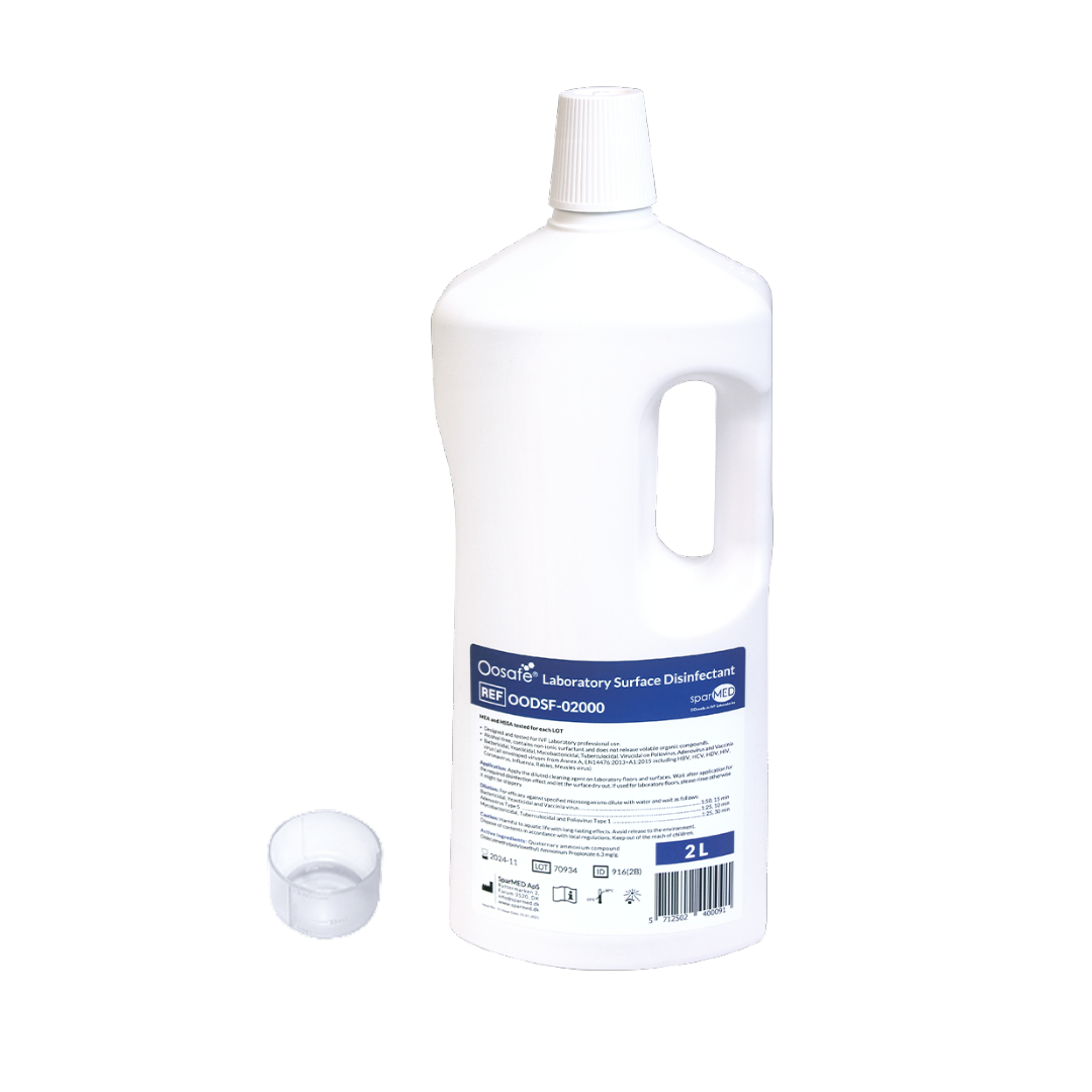 Safe disinfection and cleaning of laboratory surfaces and floor. It is also compatible with glass, stainless steel, rubber and plastic.